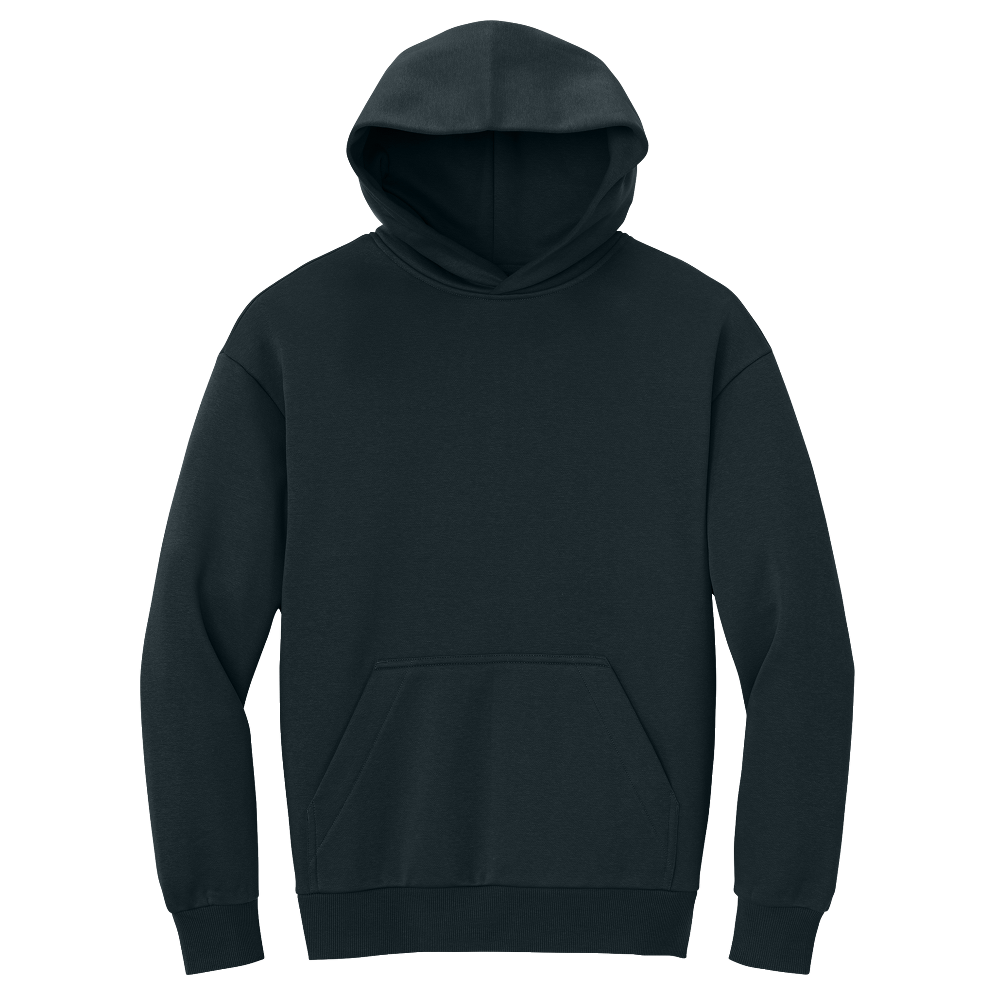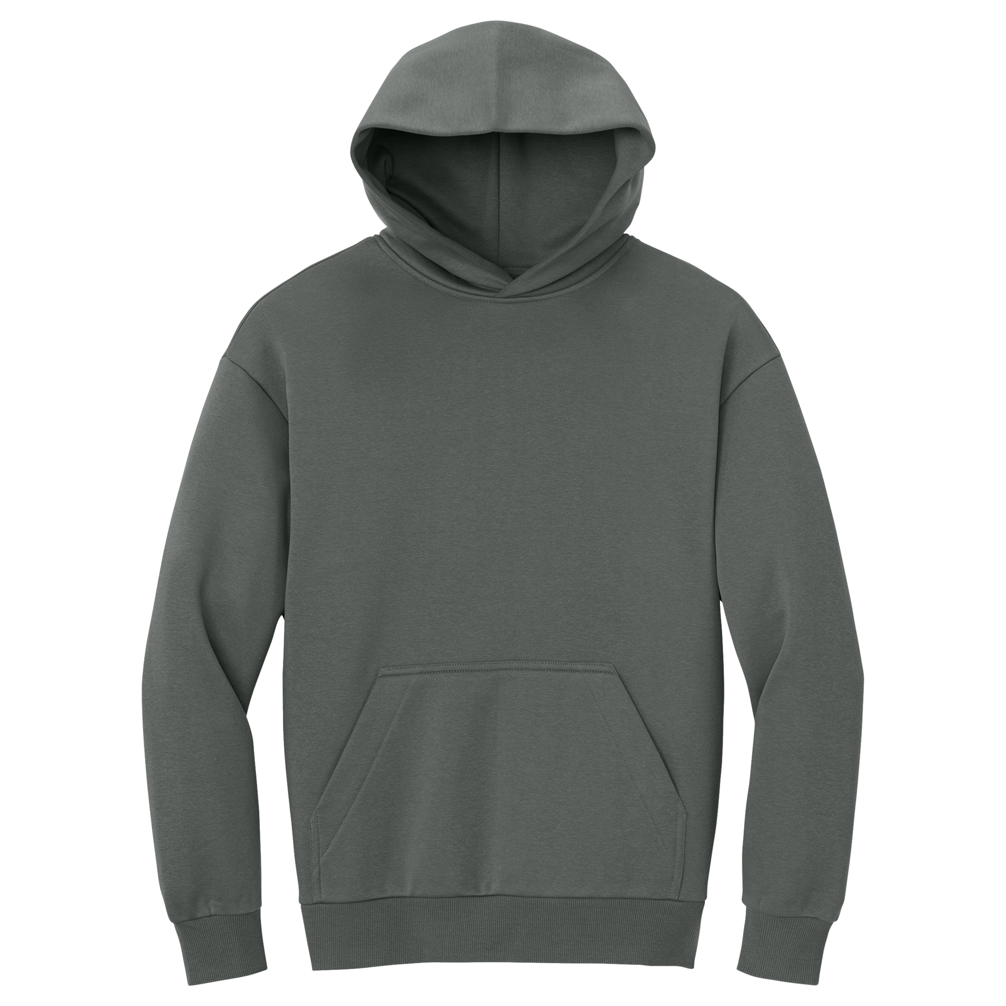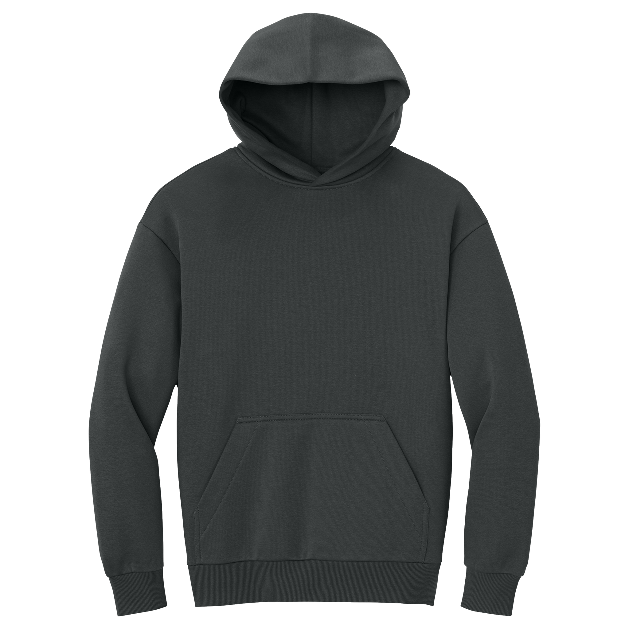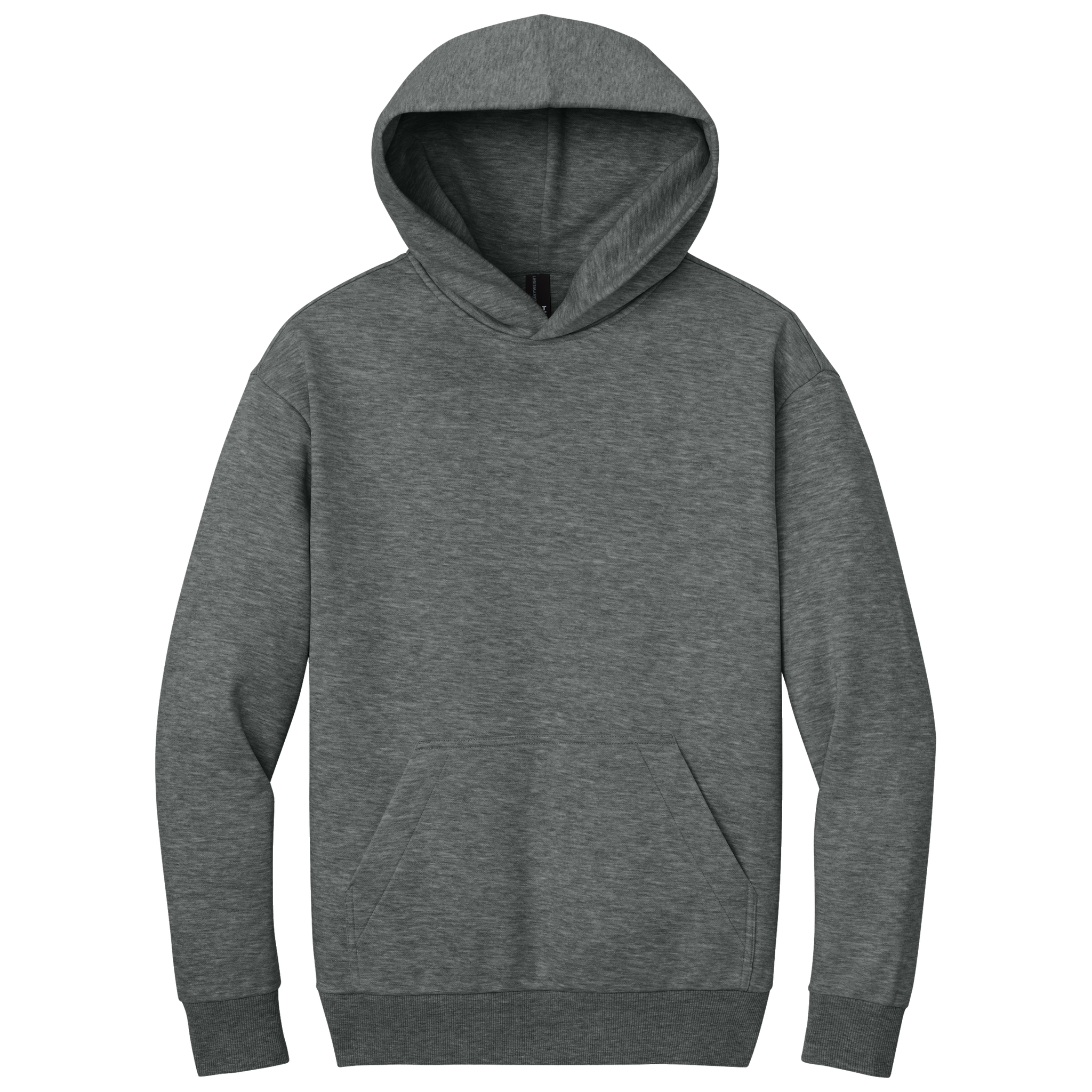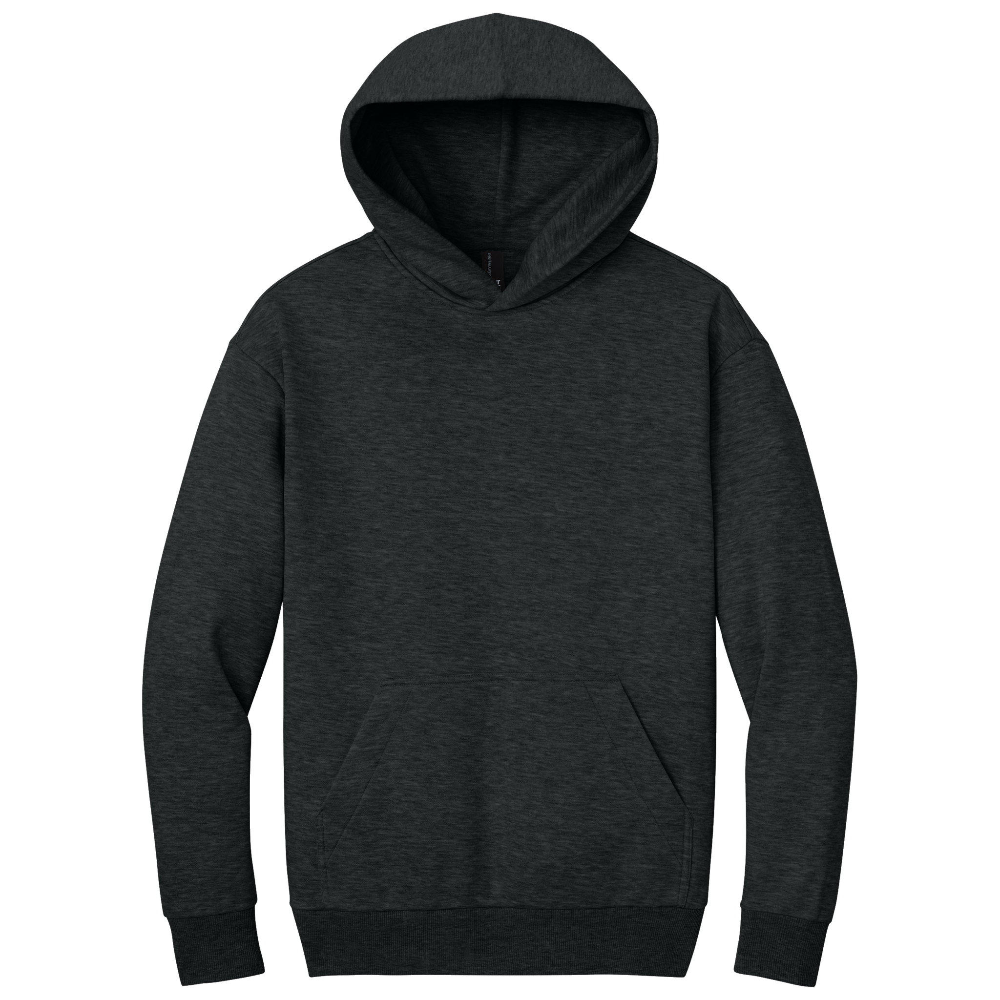 - 62/38 ring spun cotton/recycled polyester, 3-end fleece (Solids, Grey Frost, Jet Black Heather)