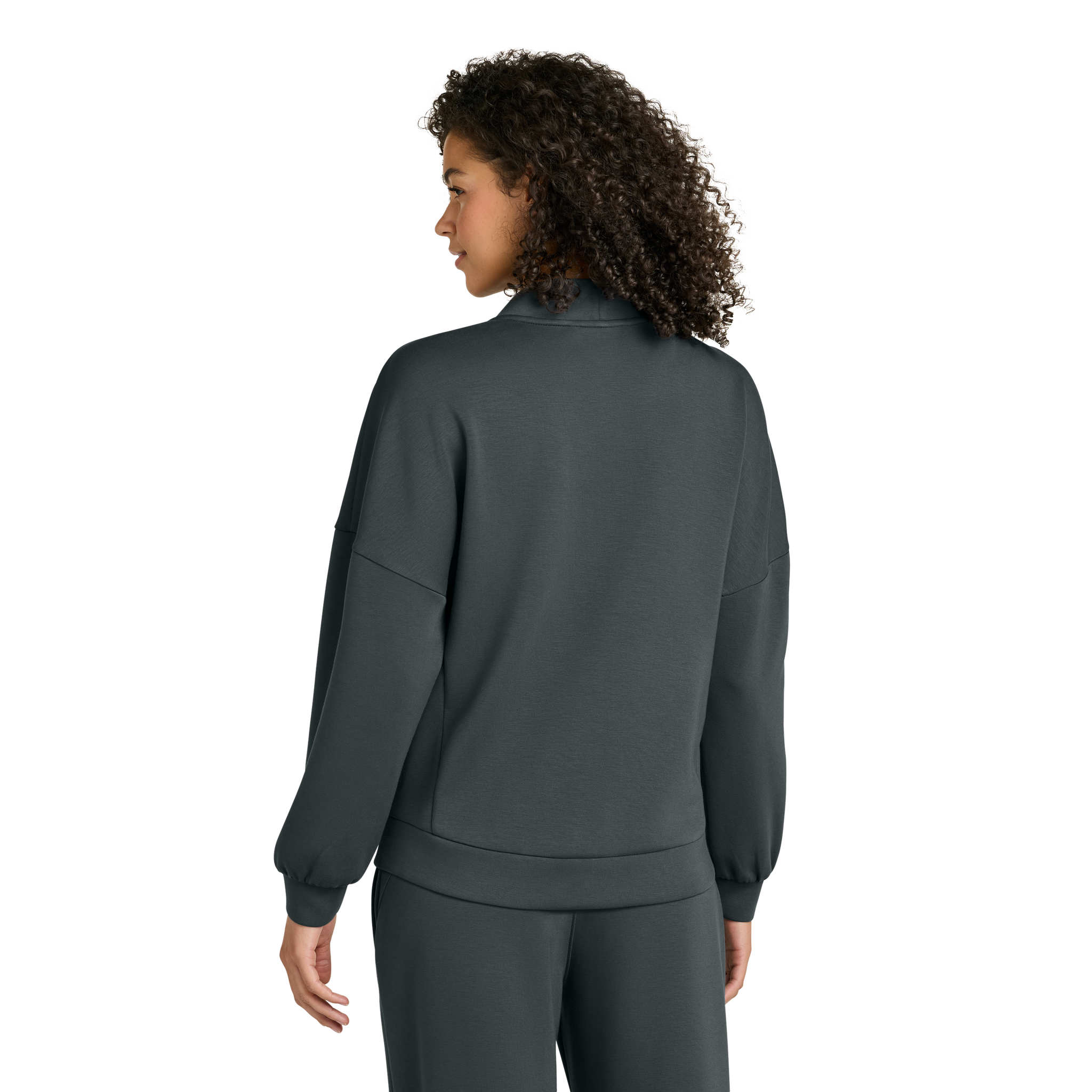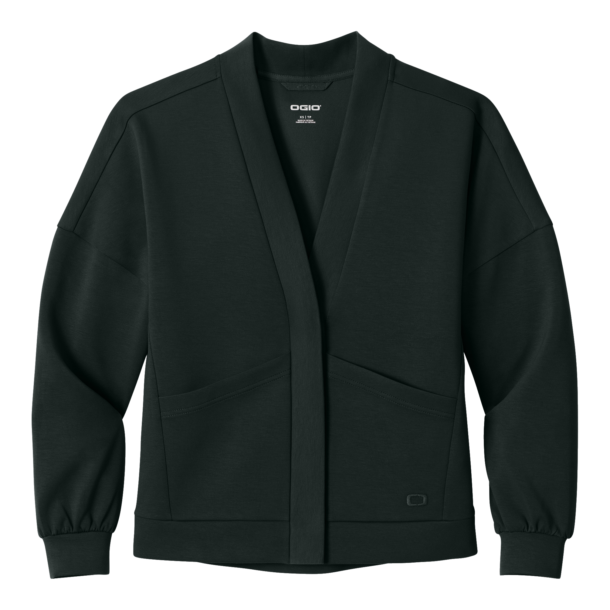 Transcend the line between work and leisure. With ultra soft double-knit and stretch, this sueded cardigan is as cozy and comfortable as it is polished.