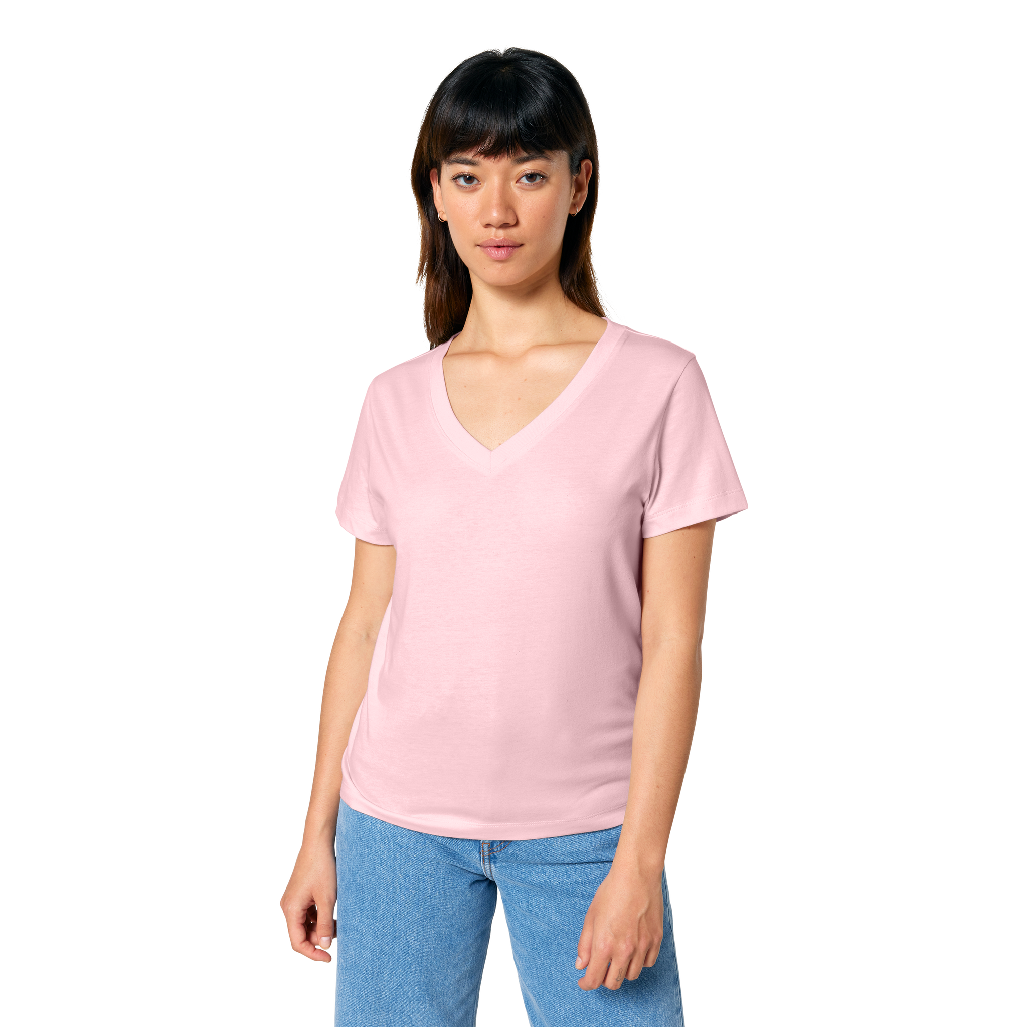 The iconic v-neck t-shirt for women. Classic style joins reliable comfort with a smooth organic cotton that’s good for the environment and presents logos perfectly.