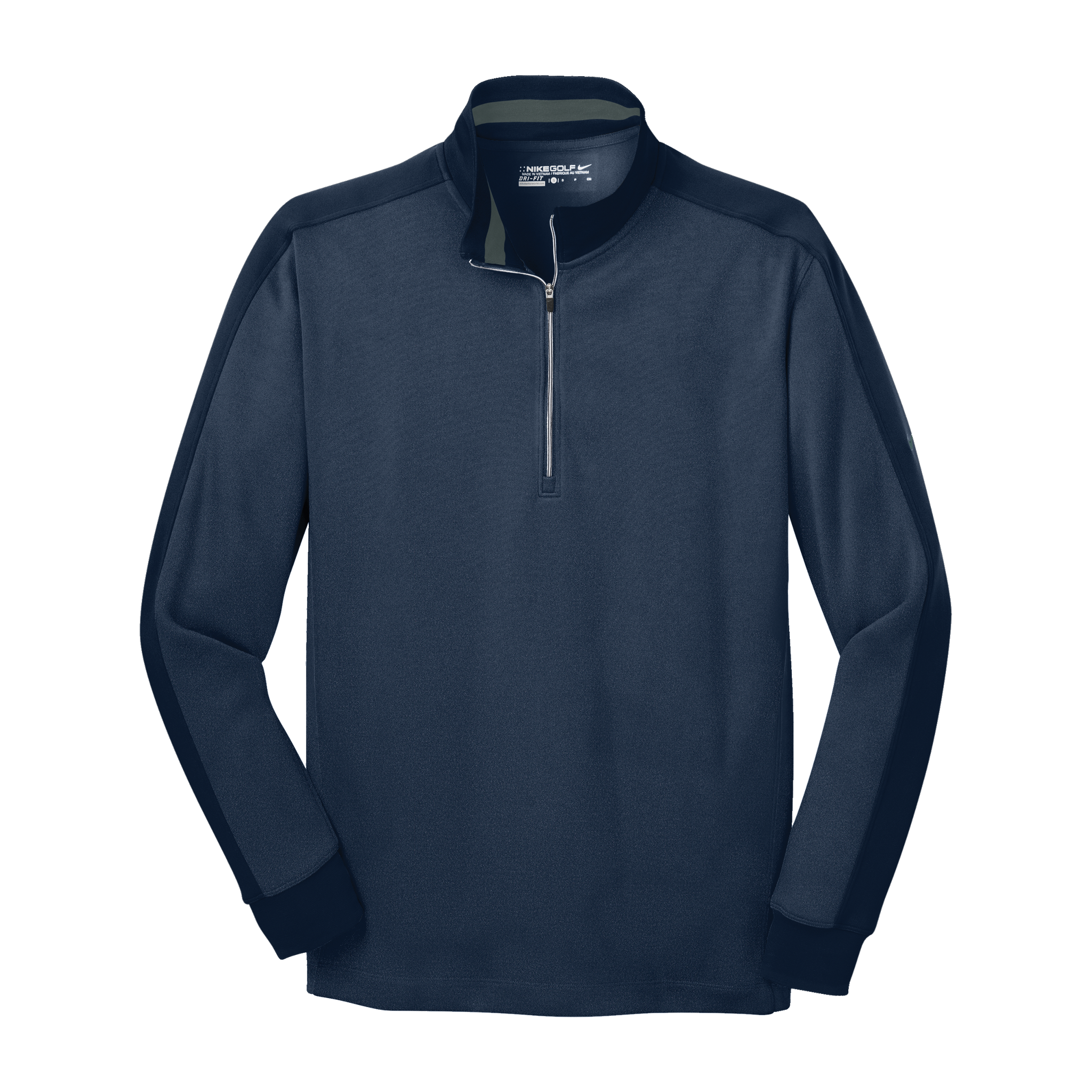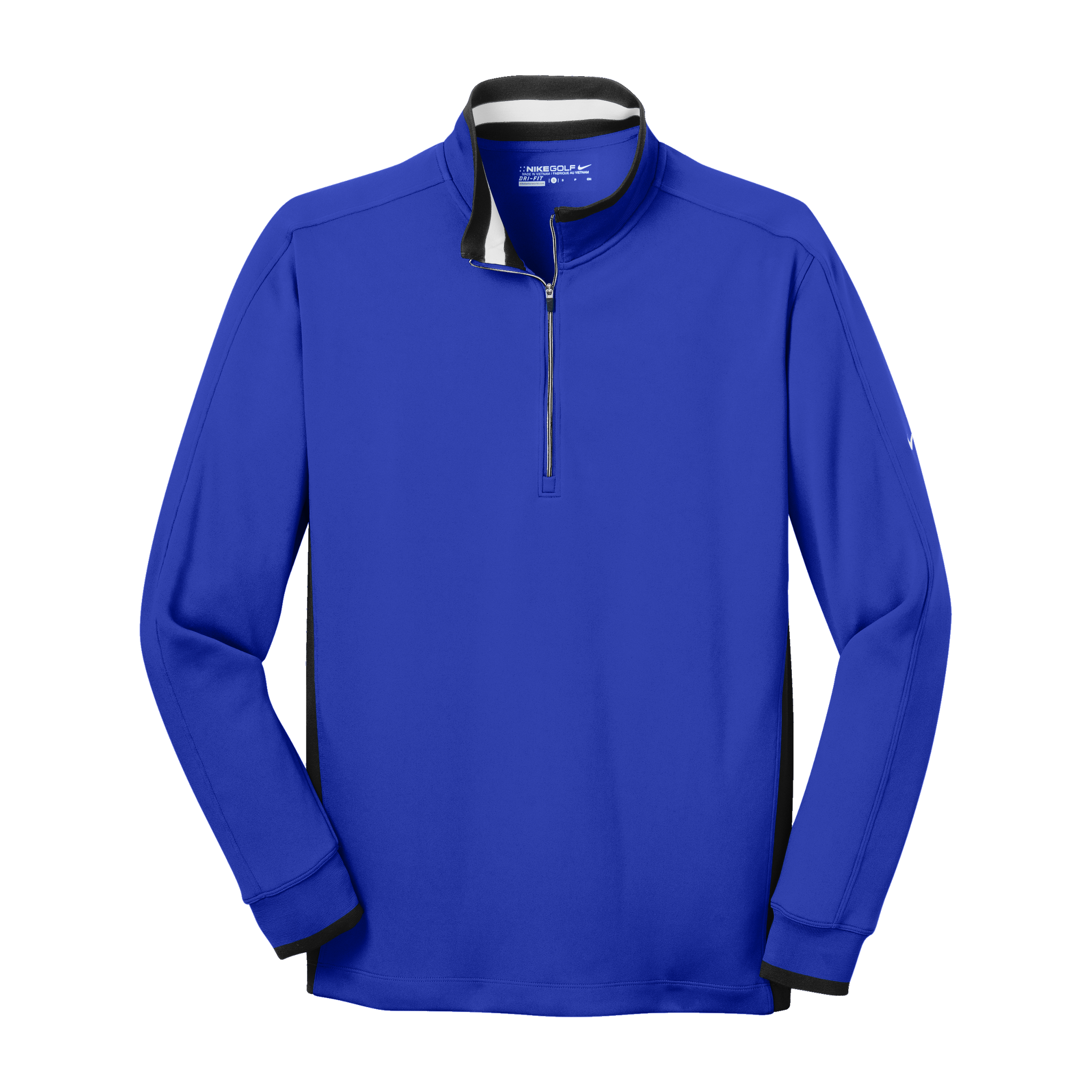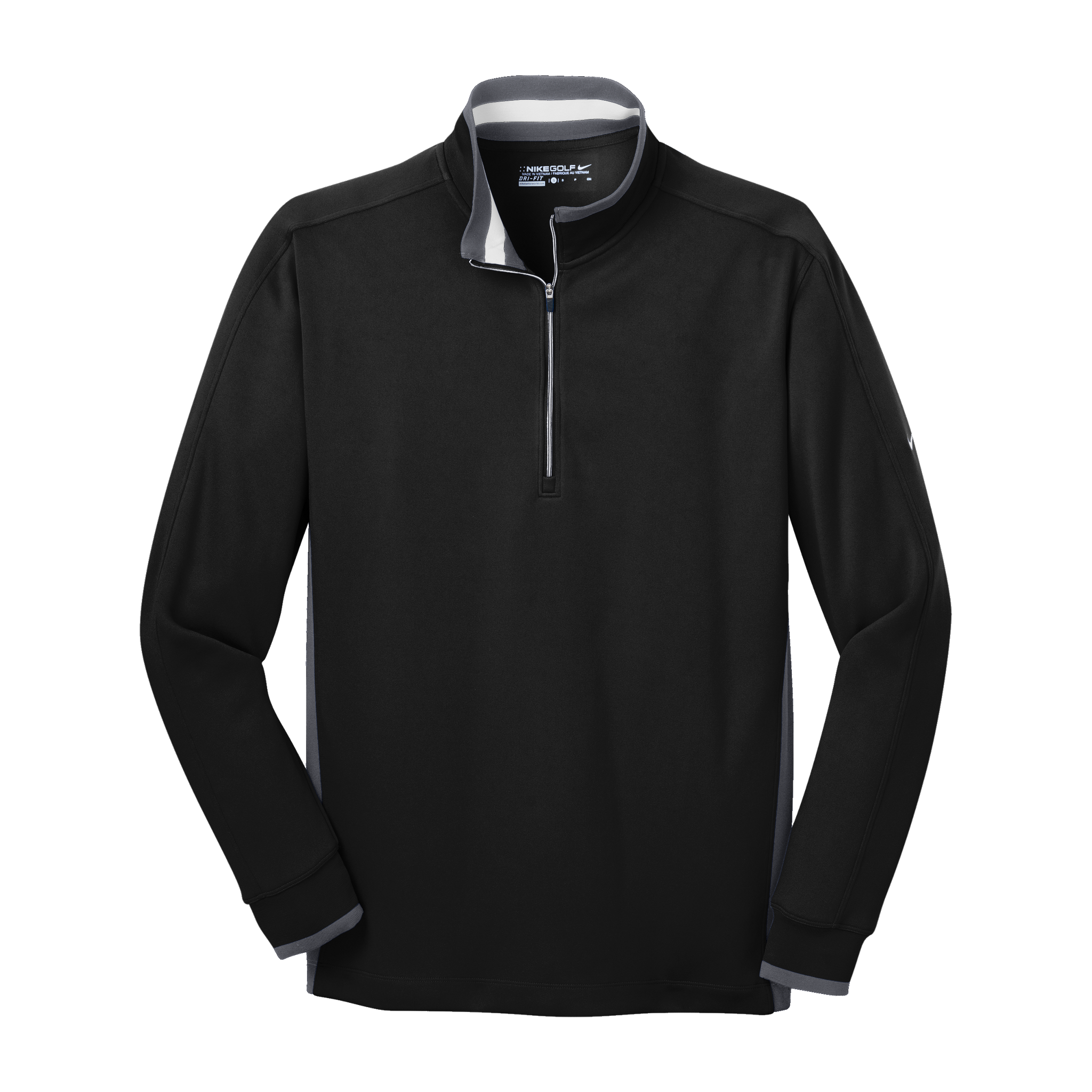 A boldly striped inner collar and reverse coil zipper give this cover-up an edge. Of course, it also performs with Dri-FIT moisture management technology.